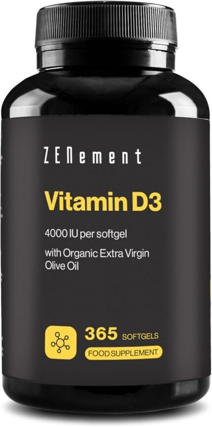 Vitamin D3, 4000 IU per softgel, 365 Softgels | with Organic Extra Virgin Olive Oil | Bones, Muscles and Immune System | Soy Free, Non-GMO | Zenement