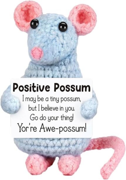 Crochet Opossum Plush, Emotional Support Stuffed Animal for Adults Anxiety, Soft Cuddly Possum Toy for Stress Relief, Comforting Desk Decor Gift for Home and Office