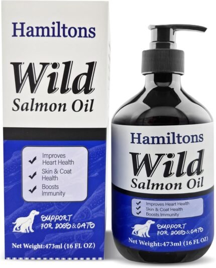 Hamiltons Wild Salmon Oil for Dogs & Cats – Pure Natural Omega-3 Supplement with Vitamin E – Promotes Healthy Skin, Shiny Coat Care, Joints & Heart – Pet Salmon Fish Oil