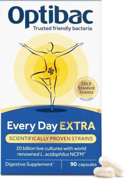 Optibac Probiotics Every Day Extra – Advanced Digestive Probiotic Supplement – Most Researched Lactobacillus Acidophilus – 90 Vegan Capsules