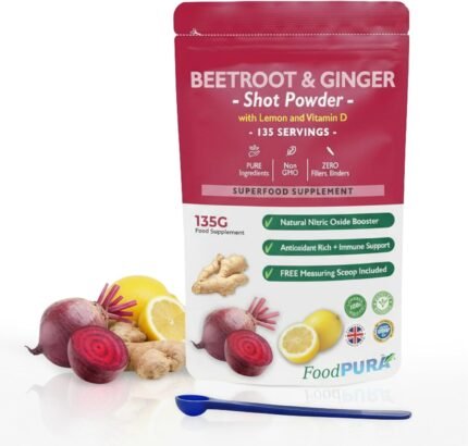 Beetroot Ginger & Lemon + Vitamin D Shot Powder 135 Servings Nitric Oxide Booster Enhances Athletic Performance & Endurance 135g 100% Natural – Antioxidant Anti Inflammatory Immune Support