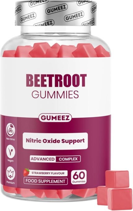 Beetroot Gummies 1500mg – Nitric Oxide & Blood Pressure Support with Grape Seed Extract & Vitamin B12 – Vegan Beetroot Supplement for Energy & Circulation – Strawberry Flavour – 30 Day Supply