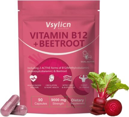 Beetroot & Vitamin B12 Complex – 9000mg Beetroot + 1000mcg Dual B12 (Methylcobalamin & Adenosylcobalamin) – Nitric Oxide Boost, Blood Pressure & Digestion, Energy & Immune Support – 90 Capsules