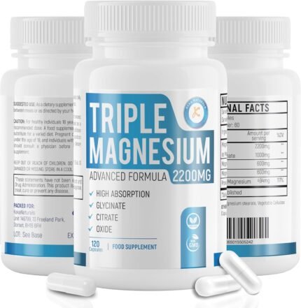 Triple Magnesium Complex 2200mg – Glycinate Citrate Oxide – 3 in 1 Powerful Supplement – 120 Capsules – Vegan