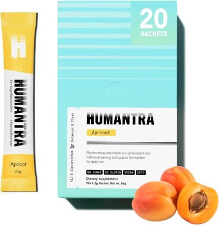 Humantra Electrolyte Packets | Zero Sugar | W/ 6 Electrolytes | Electrolytes Powder (20 Count, Apricot)