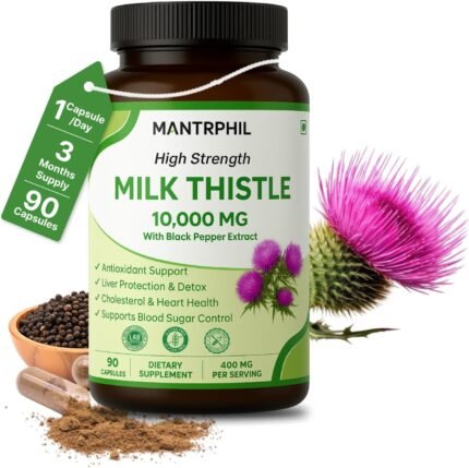 Milk Thistle Capsules High Strength 10,000mg | 90-Day Supply | 400mg Silymarin with Black Pepper | Natural Herbal Supplement for Liver Cleanse & Detox | Vegan, Non-GMO & Lab Tested