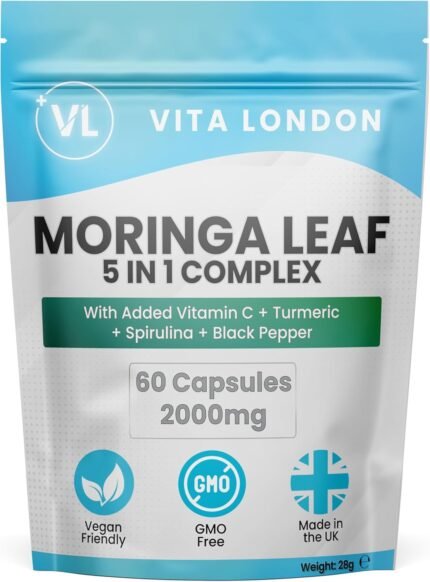 Moringa Leaf Capsules 2000mg | Added Vitamin C + Turmeric + Spirulina + Black Pepper | High Strength Supplements for Men & Women | 60 Vegan Capsules (Not Powder, Tablets of Gummies)