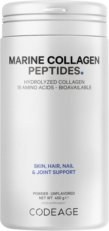 Codeage Marine Collagen Powder – Hydrolyzed Fish Collagen Peptides – Type 1 & 3 Collagen Protein Supplement – 50 Servings, Amino Acids for Skin, Hair, Nails – Non-GMO, 450 Grams