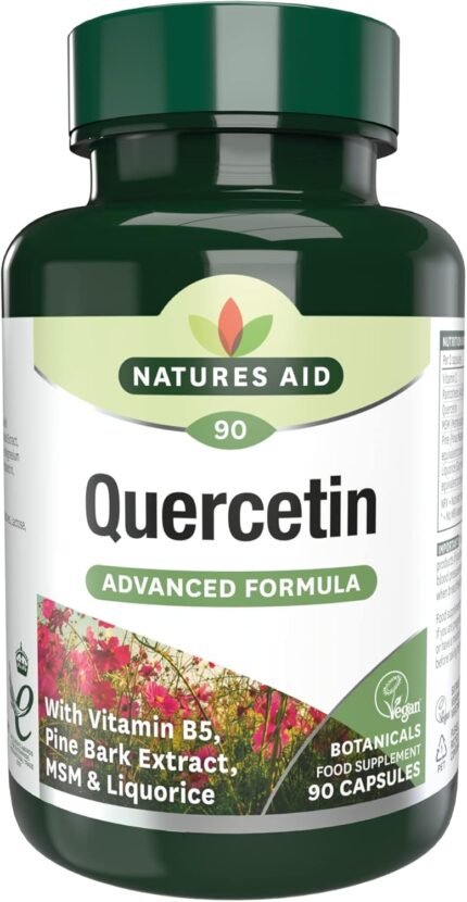 Natures Aid Quercetin Formula – Immune Support Supplement with Vitamin C, B5, MSM, Pine Bark & Liquorice – Supports Energy & Wellbeing High Strength Antioxidant – 90 Vegan Capsules