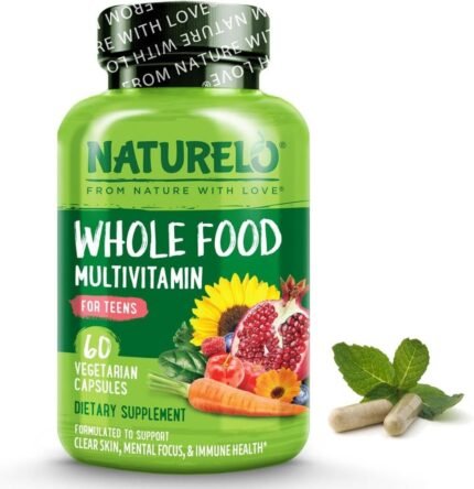 NATURELO Whole Food Multivitamin for Teens – Natural Vitamin, Mineral & Plant Extracts for Teenage Boys & Girls – Daily Nutrients for Active Children – 60 Vegan Capsules | 1 Month Supply