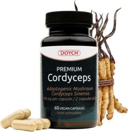 Potent Cordyceps Mushroom Capsules 1400 mg Performance Booster – Bioactive Cordyceps Sinensis Extract with 40% Polysaccharides & Beta Glucan – 60 Organic Mushroom Capsules by Doych