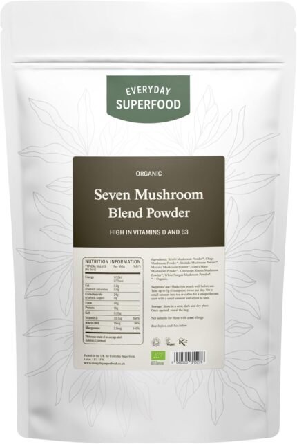 Everyday Superfood Organic Seven Mushroom Blend Powder 900g, 7 Mushrooms Including Lion’s Mane, Suitable for Cooking and Coffee Drinks