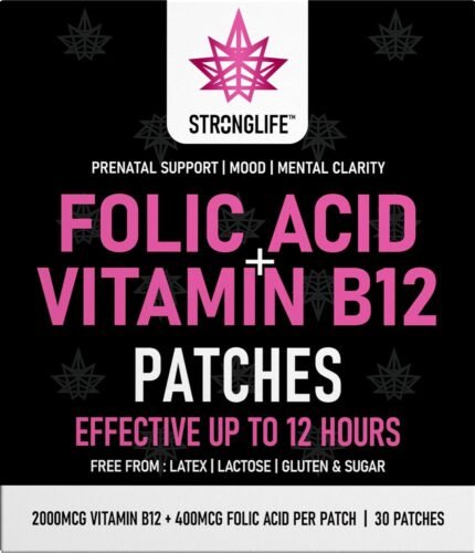 Folic Acid & Vitamin B12 Patches – High Absorption, 12-Hour Release – Supports Energy, Mood, & Immune Health – Easy-to-Use – 30 Patches – Natural Ingredients – Like – Capsules & Powder