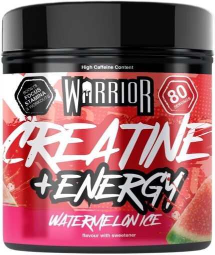 Warrior Creatine Monohydrate Powder + Energy 360g (80 Servings) – Micronised Creatine Powder Supplement + Vitamin B & Caffeine for Energy & Focus, Pre & Post Workout for Men & Women – Watermelon Ice