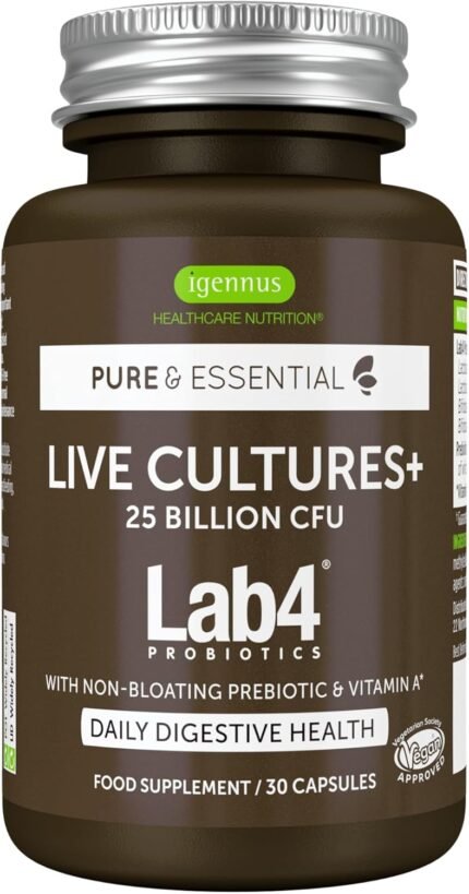 Igennus Probiotics & Prebiotic, Lactobacillus Acidophilus & Bifidobacterium, Live Cultures Complex for Gut Health, 25 Billion CFU, Vegan, Bloating Relief, for Women and Men, 30 Capsules, 1 a-Day