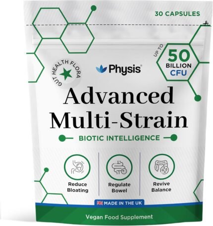 Physis 50 Billion CFU Probiotics for Gut Health | Digestion | Bloated Stomach Relief | 60 Capsules (up to 2 Month Supply) | Complete Gut Repair | Probiotics for Men & Women | Made in The UK