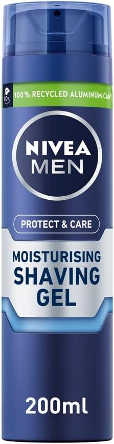 NIVEA MEN Protect & Care – Moisturising Men Shaving Gel – Beard Care – Enriched With Aloe Vera & Pro-Vitamin B5 – Smooth Glide & Close Shave – For Dry Skin – 200 ml