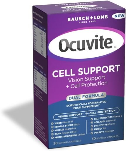 Ocuvite Cell Support Eye Supplement – Supports The Visual System & Cell Protection by Bausch + Lomb – Lutein and Zeaxanthin Supplement with Omega 3 DHA, Vitamin E and Zinc, 2 Capsules Per Day
