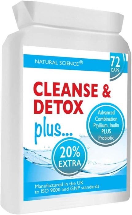 Probiotic + Psyllium Detox Combination Capsules – 3 Billion CFU, Cleanse Toxins, Support Digestive Wellness – 60 Vegan Capsules Made in UK