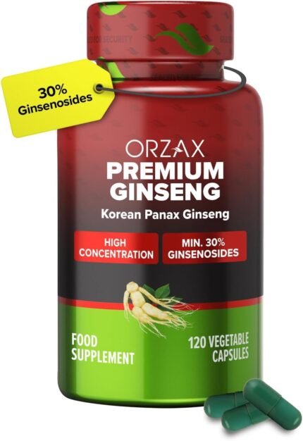 ORZAX Korean Panax Ginseng Capsules with 30% Ginsenosides for Performance & Energy Supplements for Women and Men – Red Ginseng for Enhanced Focus (120 Veg Capsules)