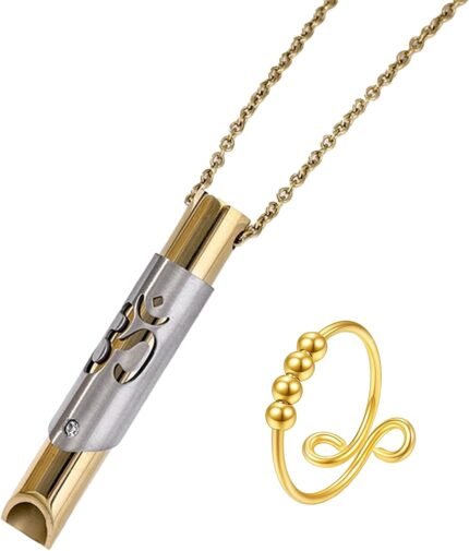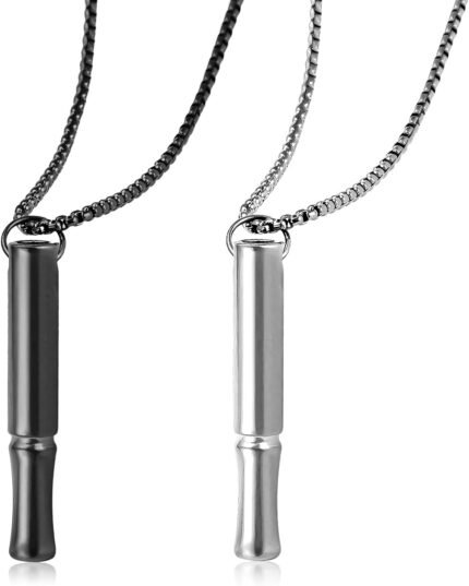 2 Pcs Breathlace Sensory Necklace for Mindful Breathing – Anxiety Relief Whistle Pendant with Stainless Steel Chain, Silent Meditation Tool for Focus & Stress Management (Black/Silver)