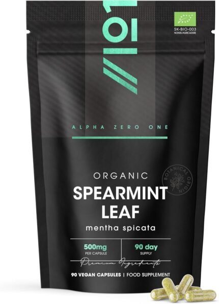 Organic Spearmint Leaf 500mg – 90 Vegan Capsules – High Strength Mentha Spicata Supplement – Resealable and Recyclable Pouch by Alpha01
