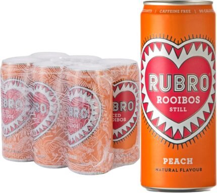 Rubro – Peach Rooibos – 6 Can Multipack – 300ml – Still, Soft Drink – Peach Tea Drink – Natural Flavours – Caffeine Free – Bulk Soft Drinks