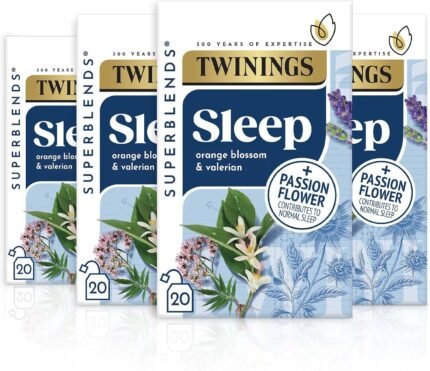 Twinings Superblends Sleep Tea – Valerian Root & Orange Blossom Herbal Tea Infusion with Passionflower & Lavender – Sleep Tea, 80 Biodegradable Tea Bags