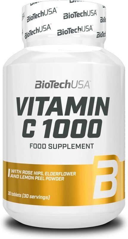 BioTechUSA Vitamin C 1000 + BioFlavonoids | Multiple Sources | Immune Support | Rosehip, Elderflower & Lemon, 30 Tablets