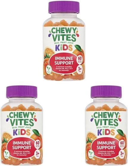 Chewy Vites Kids Immune Support, 60 Kids Vitamins Gummies, High Strength Vitamin D, VIT C, B6, B12, Zinc, Selenium, 2 Months Supply, Real Fruit Juice, Vegan, Age 3 +, Orange Flavour (Pack of 3)