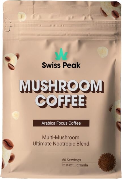 Mushroom Functional Coffee Blend (60-Servings) with Lion’s Mane, Cordyceps, Shiitake, Maitake, Ashwagandha – Nootropic Coffee for Focus & Energy | Vegan | UK Made | 2-Month Supply