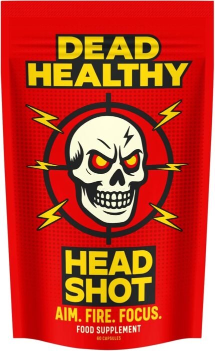 Dead Healthy Head Shot – Focus & Mental Performance Support with Lion’s Mane, Bacopa, Rhodiola & Vitamin B Complex – 60 Vegan Capsules – Made in The UK