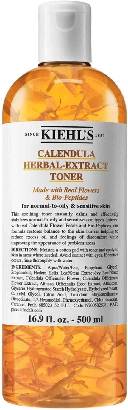 Kiehl’s Calendula Herbal-Extract Toner Soothing Alcohol-Free Toner for Normal to Oily Skin, 500Ml