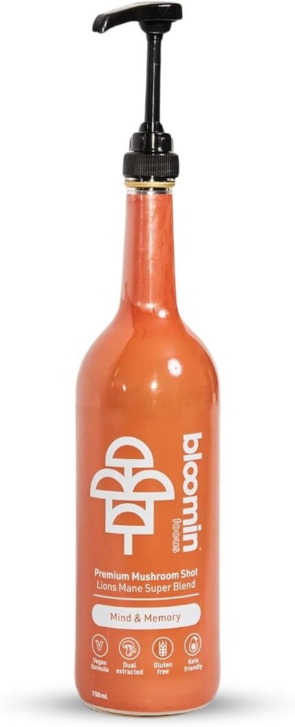 Bloomin Focus Liquid Pumpshot – Lions Mane Supplement – High Strength 7500mg / Serving – with Ashwagandha, Rhodiola Rosea and Vitamin B12. 93 Servings – 32p / Serving – Add to Coffee, Smoothies…