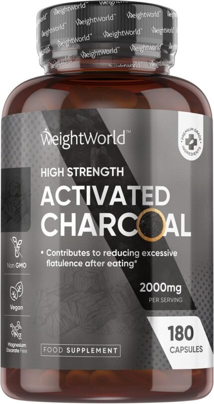 Activated Charcoal Capsules 2000mg – 180 Vegan Capsules – Activated Charcoal Supplement – Sourced from Eucalyptus and Acacia Barks – Non-GMO & Magnesium Stearate-Free