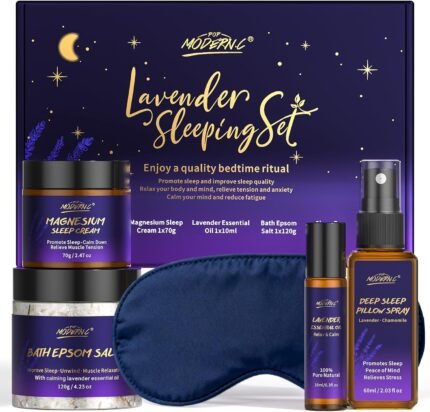 Lavender Sleep Set, Sweet Dream Sleep Gift Set – Sleep Spray, Magnesium Cream, Essential Oil, Epsom Salt, Eye Mask, Pure Natural Lavender Essential Oil, Bath Kit, SPA Kit, Birthday Gift, Calm & Relax