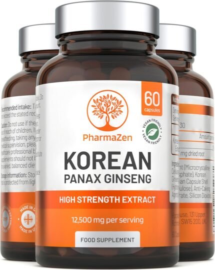 Korean Ginseng Tablets 12500mg – Panax Red Ginseng Extract High Strength – 60 Capsules – Premium Ginseng Root Standardised Ginsenosides – Natural Herbal Supplements for Men & Women – Made in The UK