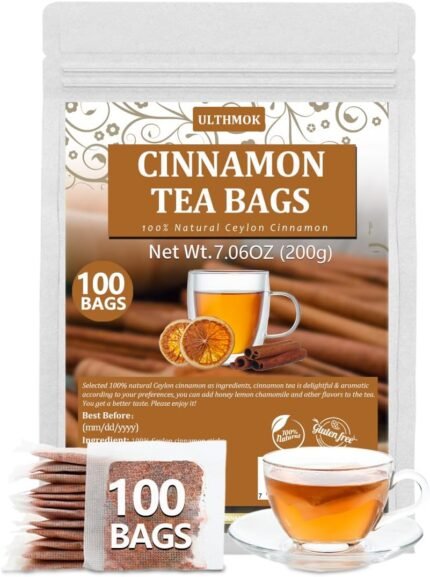 Premium 100 Pure Ceylon Cinnamon Tea Bags, Made with 100% Ceylon Cinnamon Sticks, No Additives & Caffeine Free.