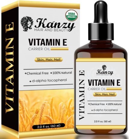 Kanzy Vitamin E Oil for Face & Skin 100% Naturally Sourced Plant-Based Organic Pure Vitamin E Oil for Hair d-Alpha-tocopherol Body Oil for Women & Men, Strengthens & Moisturizes Nails 60ml