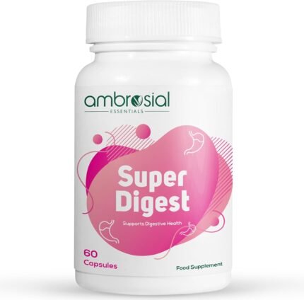 Ambrosial Super Digest – Advanced Digestive Enzyme Supplement with Betaine HCl, Pepsin, Ox Bile & L-Glutamic Acid – Gut Health & Nutrient Absorption Support – GMP-Certified, 60 Capsules (2 Months)
