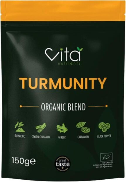 Turmunity Superfood Powder Blend 150g – Premium Organic Food – Vegan & Gluten Free – Rich Ayurveda, Turmeric, Black Pepper and More Formula – Ideal Latte Mix – Made in The UK