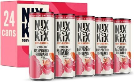 Nix & Kix | Raspberry & Rhubarb | 100% Natural Premium Sparkling Soft Drink | Low Calorie & Vegan Friendly | No Added Sugar Or Sweeteners | 250ml x 24 Pack