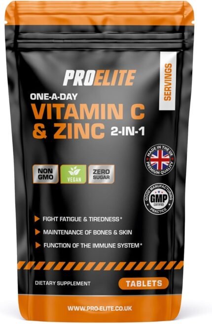 Vitamin C and Zinc 360 Tablets Vegan – Ascorbic Acid with Added Zinc – Maintenance of Normal Immune System – High Strength Vitamin C & zinc Capsule & Powder Alternative by PROELITE