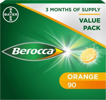 Berocca Vitamin C Effervescent Tablets, with Magnesium, Vitamin B12 & Vitamin B Complex, Orange Flavour, 1 Pack of 90 Tablets – 12 Weeks Supply