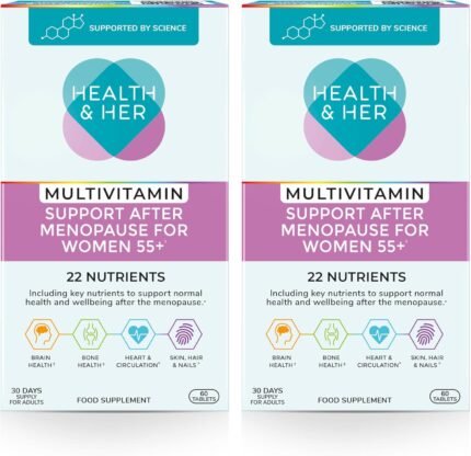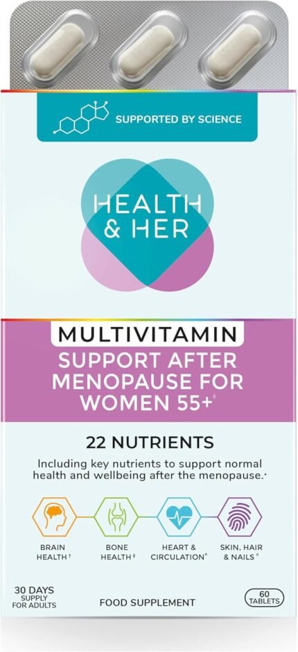 Health & Her Multivitamin Support After Menopause for Women 55+ – Supplements for Women – Nutrition and Wellbeing Support – 1 Month Supply, 60 Tablets – Vegan & Gluten Free