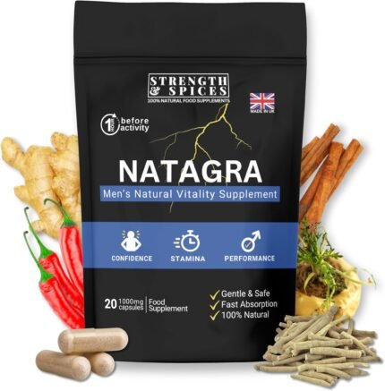 Natagra 1000mg Natural Male Vitality Supplement – Herbal Blend with Maca, Tribulus Terrestris, Ginseng – Supports Energy and Well-Being – Vegan & UK Made – 20 Capsules