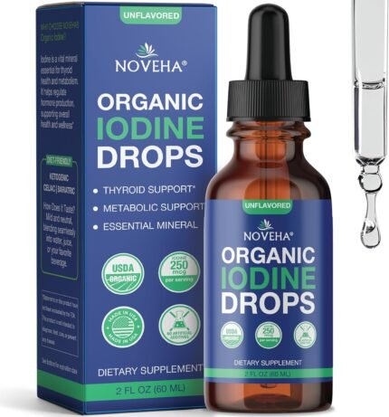 NOVEHA Iodine Drops | Organic Potassium Iodide Supplement | Daily Support for Thyroid Function & Wellness | 250 mcg per Serving | USDA Organic, Vegan, Non-GMO, Gluten-Free | 30-Month Supply