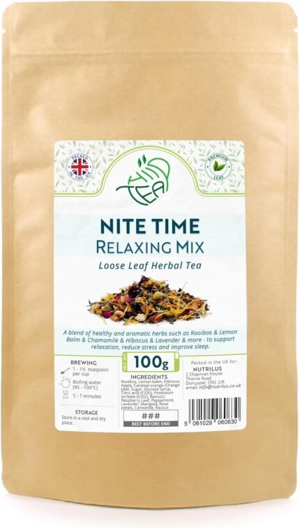 Nite Time Premium Herbal Loose Tea – Mood & Relaxation & Sleep – Rooibos & Lemon Balm & Chamomile & Hibiscus & Lavender & more (100g)