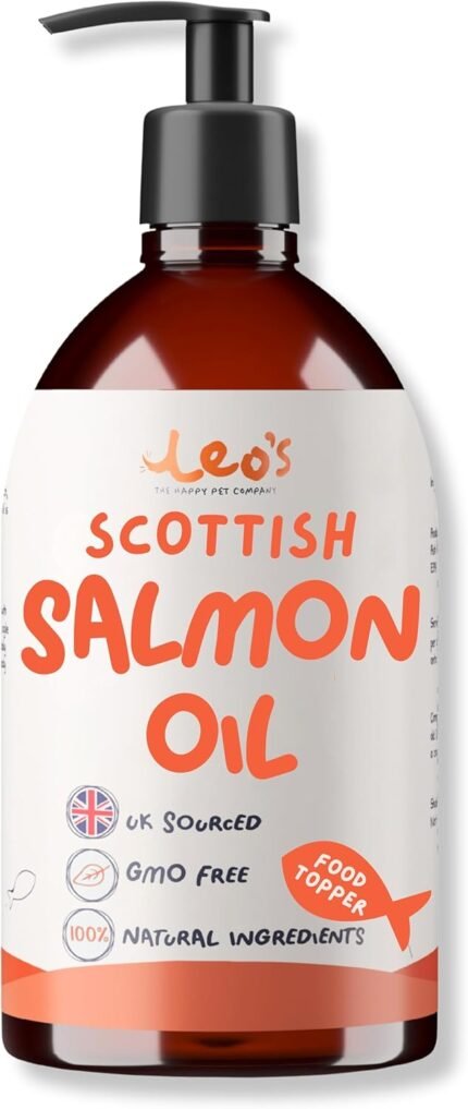 Leo’s Salmon Oil for Dogs and Cats | Premium 100% Natural Food Topper Fish Oil for Dogs and Cats | Enhances Coat Shine, Joint & Brain Health, Itchy or Dry Skin, and Dandruff Hair Treatment 500ml