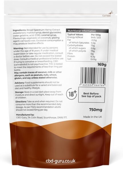 CBD Guru Sugar Free CBD Cola Bottles 25mg 30 Pack – Cola Flavour Broad Spectrum CBD Bottles for Sleep & Anxiety Support, 750mg Total CBD